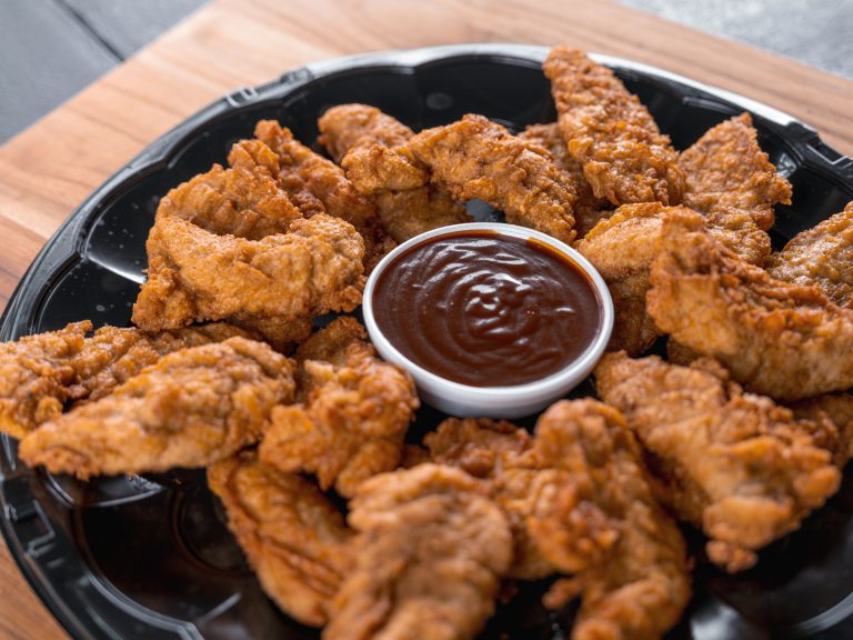 Serves 20 people – Crispy chicken tenders served with your favorite BBQ sauce for dippin’.